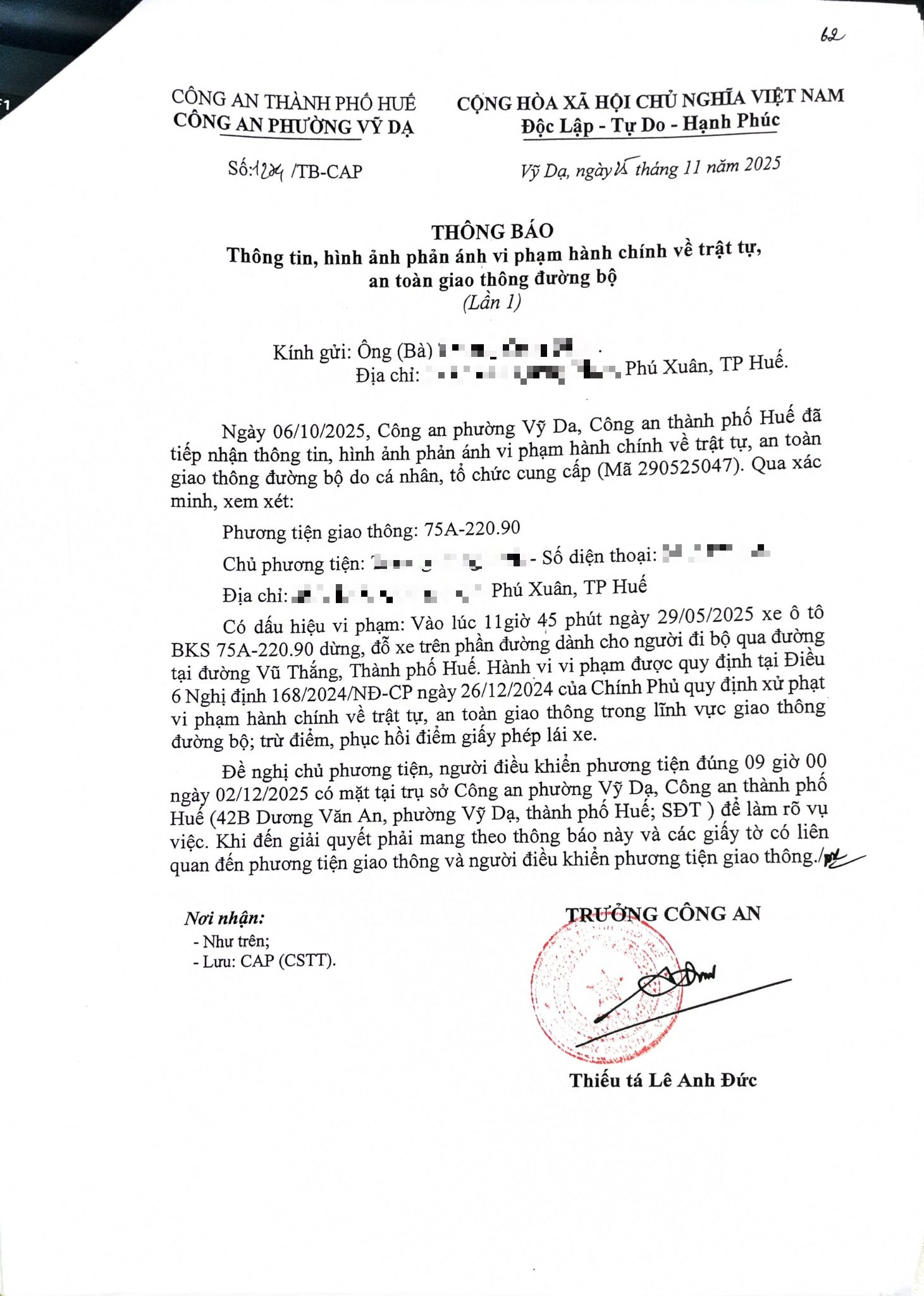 Vấn đề quý Ông/Bà phản ánh, Công an thành phố Huế đã chỉ đạo Công an phường Vỹ Dạ kiểm tra và xin thông báo kết quả như sau: