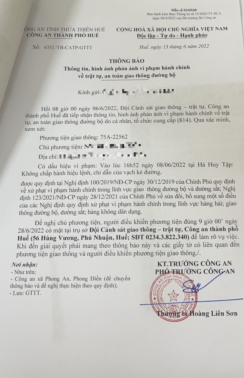 Vấn đề Ông/Bà phản ánh, Công an tỉnh đã chỉ đạo Công an thành phố Huế kiểm tra và trả lời như sau: