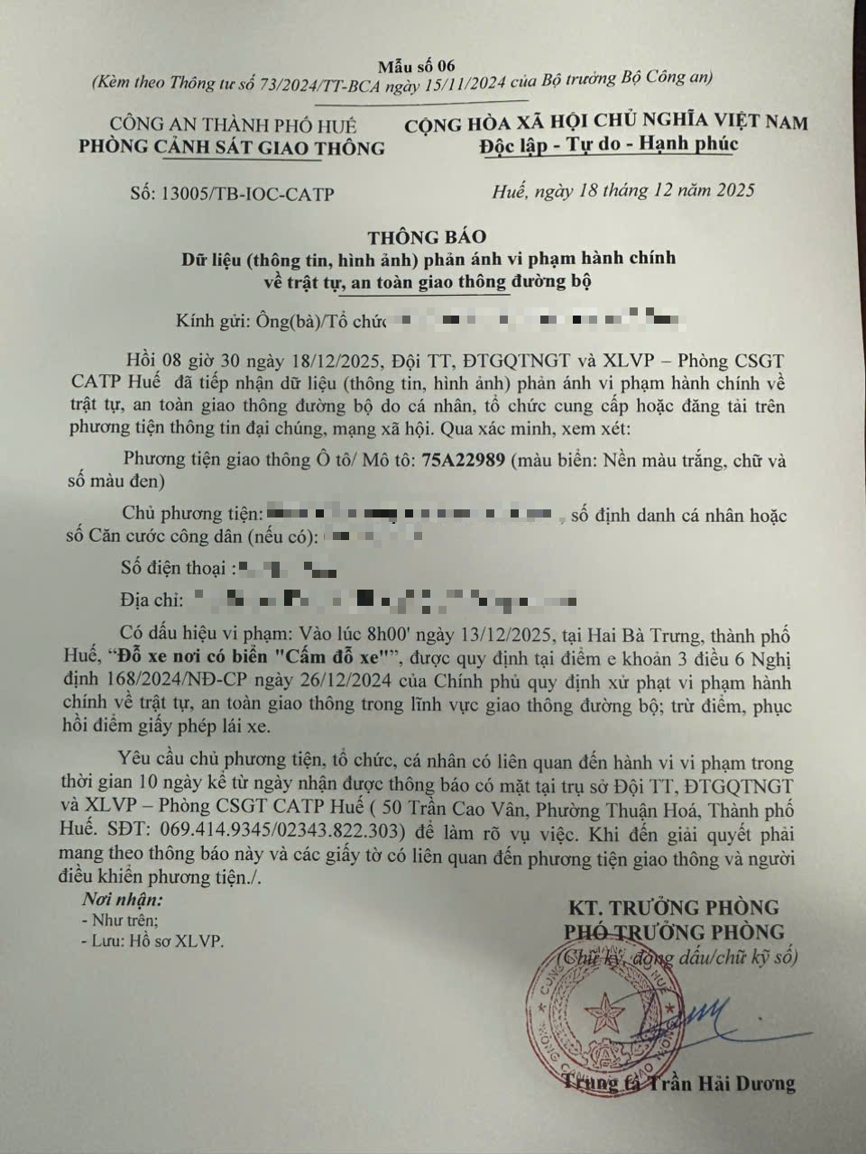 Vấn đề quý Ông/Bà phản ánh, Phòng Cảnh sát giao thông – Công an thành phố Huế đã kiểm tra và xin thông báo kết quả như sau: