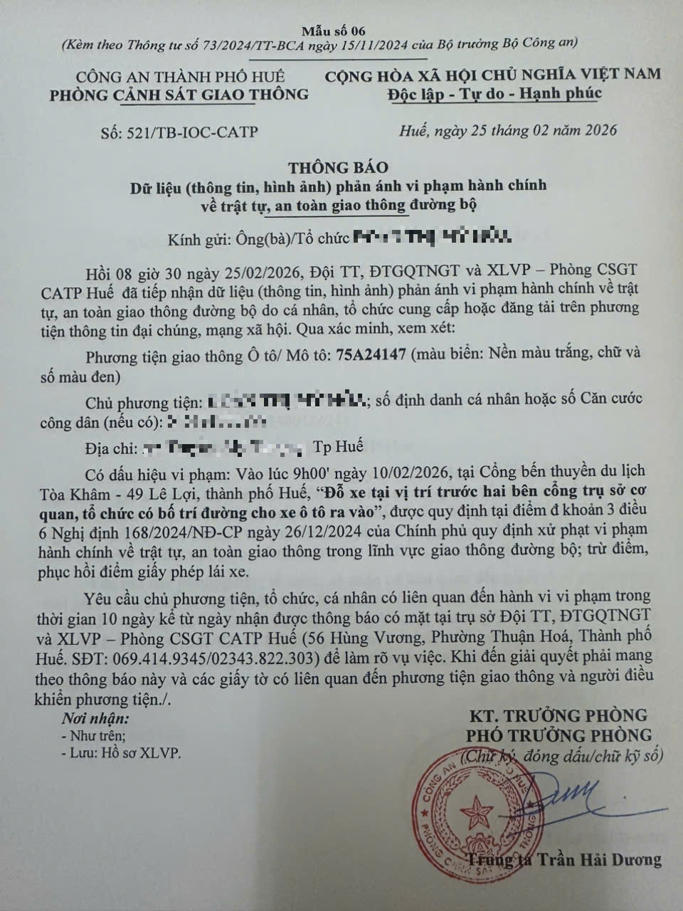Vấn đề quý Ông/Bà phản ánh, Phòng Cảnh sát giao thông – Công an thành phố Huế đã kiểm tra và xin thông báo kết quả như sau: