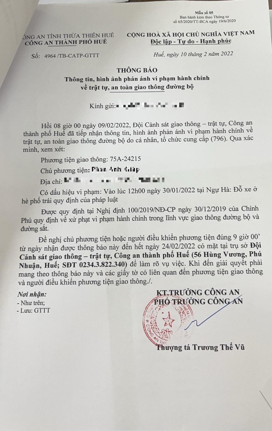 Sau khi nhận phản ánh, Công an tỉnh đã chỉ đạo Công an thành phố Huế xác minh, kết quả như sau: