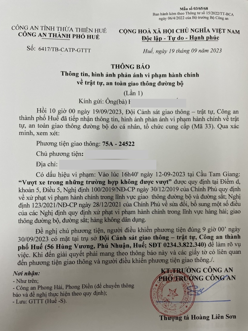 Vấn đề quý Ông/Bà phản ánh, Công an tỉnh đã chỉ đạo Công an thành phố Huế xác minh và xin thông báo kết quả như sau: