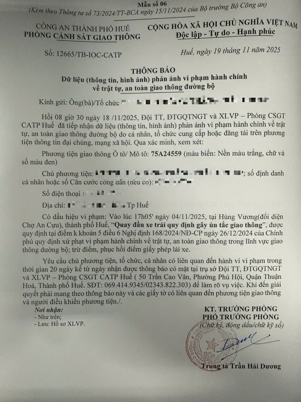 Vấn đề quý Ông/Bà phản ánh, Phòng Cảnh sát giao thông – Công an thành phố Huế đã kiểm tra và xin thông báo kết quả như sau: