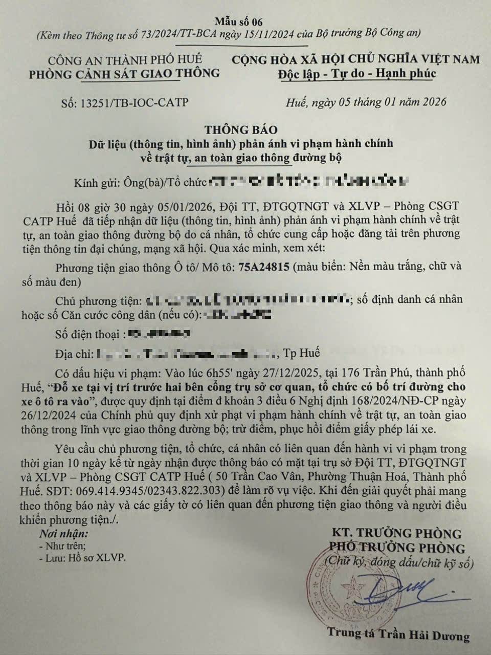 Vấn đề quý Ông/Bà phản ánh, Phòng Cảnh sát giao thông – Công an thành phố Huế đã kiểm tra và xin thông báo kết quả như sau: