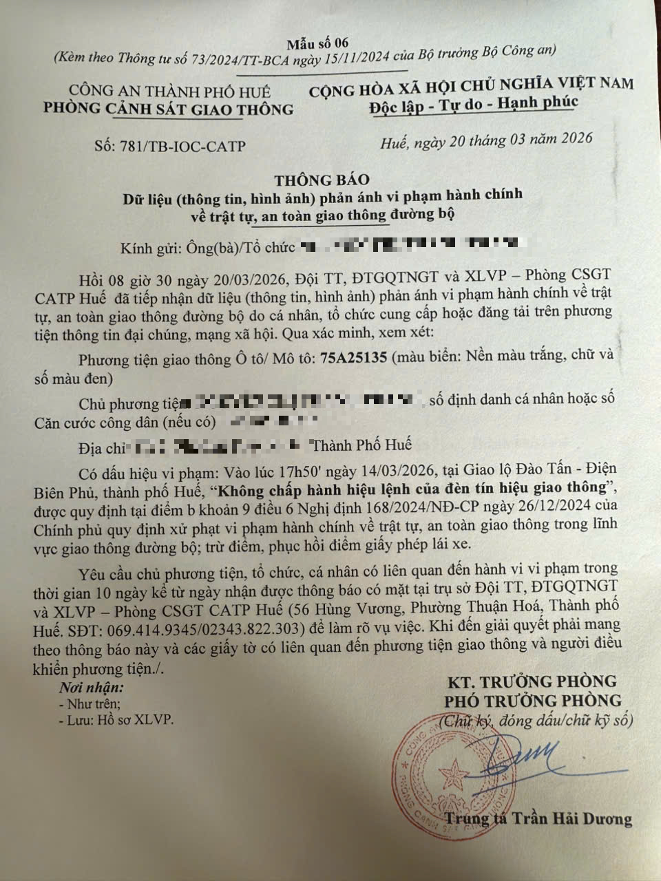Qua hình ảnh phản ánh, Phòng Cảnh sát giao thông xác định lỗi vi phạm của người điều khiển phương tiện 75A25135 như sau: “Không chấp hành hiệu lệnh của đèn tín hiệu giao thông” quy định tại điểm b, khoản 9, điều 6 Nghị định 168/2024/NĐ-CP.