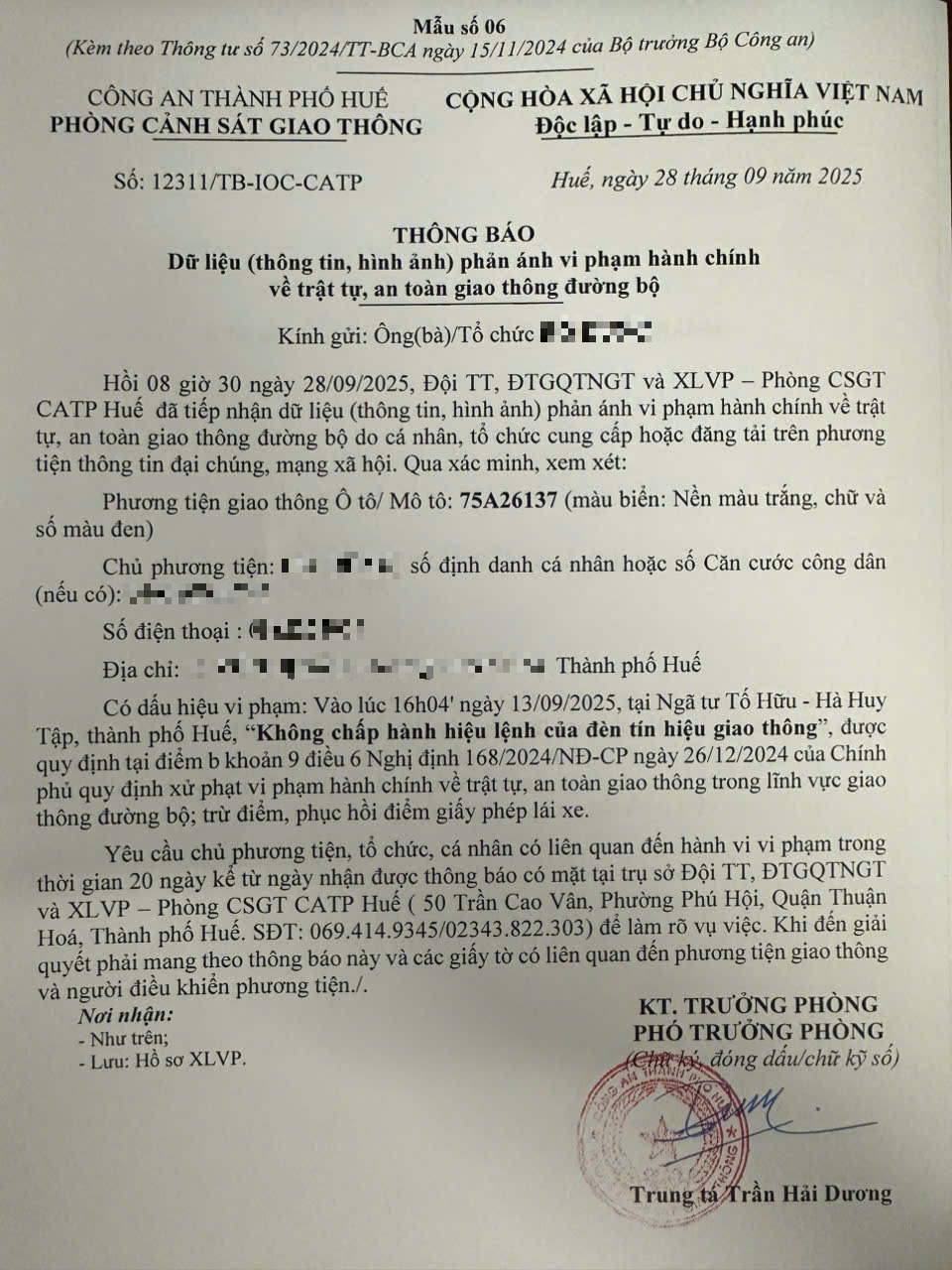 Vấn đề quý Ông/Bà phản ánh, Công an thành phố Huế đã chỉ đạo Phòng Cảnh sát giao thông kiểm tra và xin thông báo kết quả như sau:
