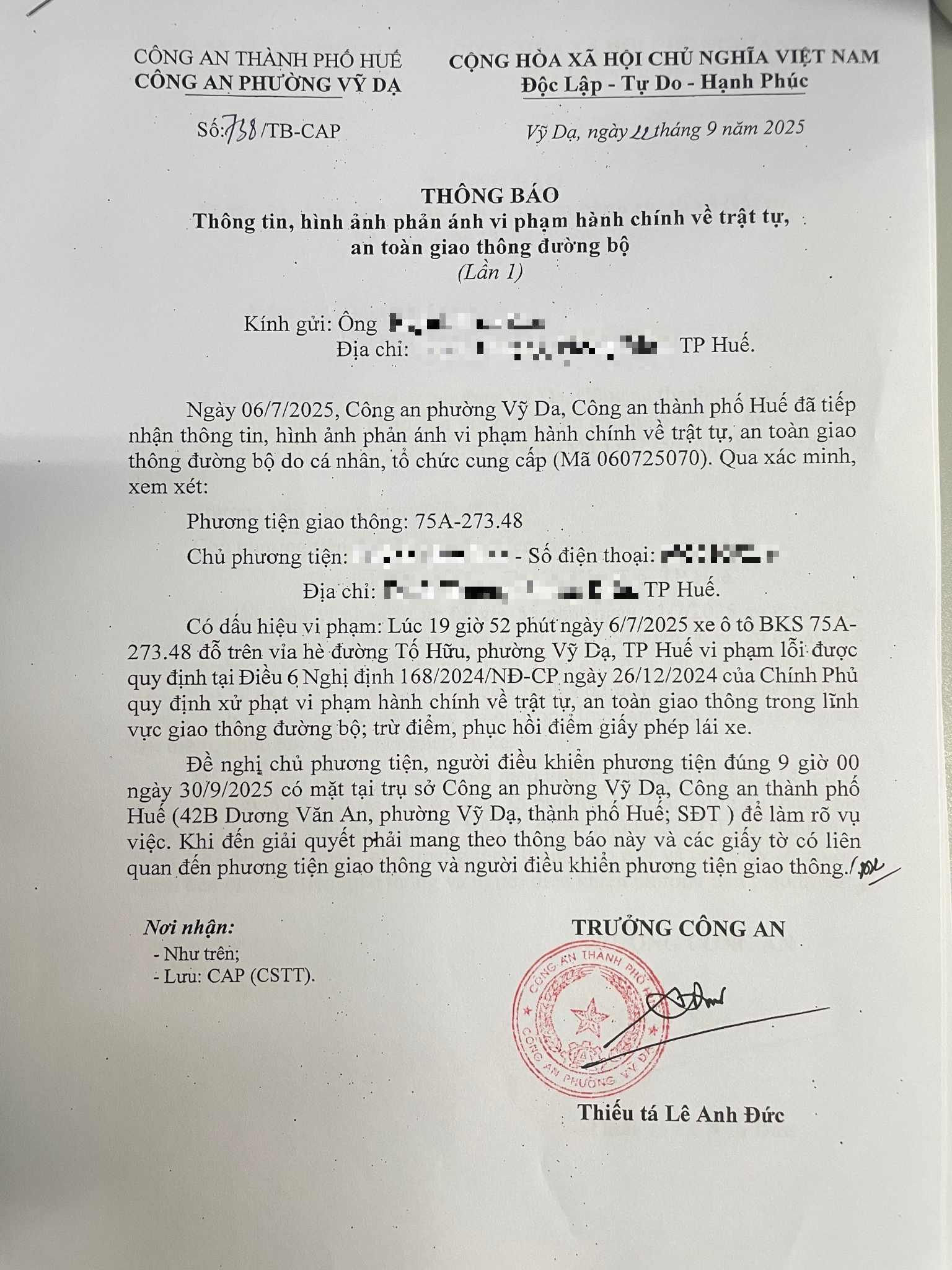 Vấn đề quý Ông/Bà phản ánh, Công an thành phố Huế đã chỉ đạo Công an phường Vỹ Dạ kiểm tra và xin thông báo kết quả như sau: