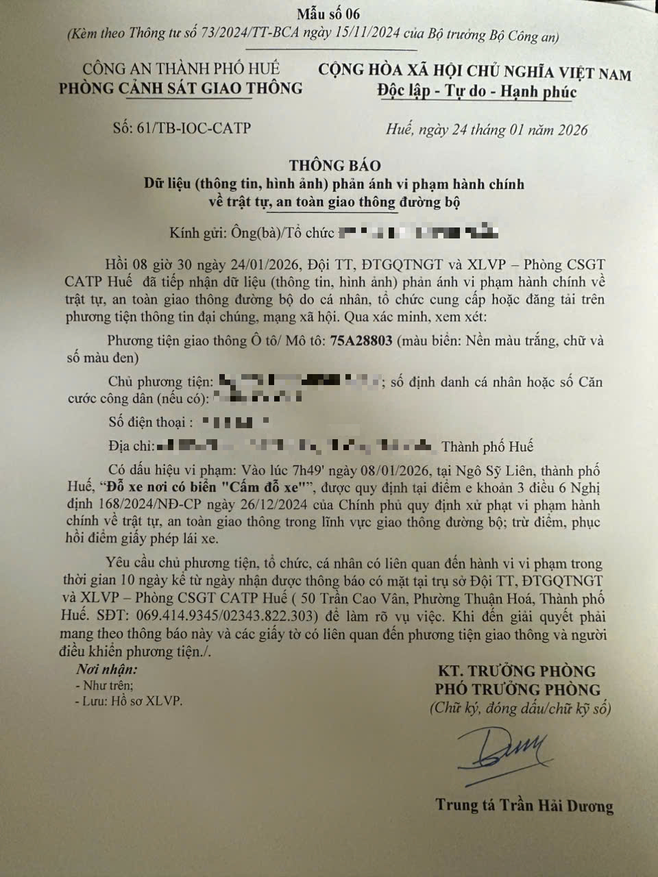 Vấn đề quý Ông/Bà phản ánh, Phòng Cảnh sát giao thông – Công an thành phố Huế đã kiểm tra và xin thông báo kết quả như sau: