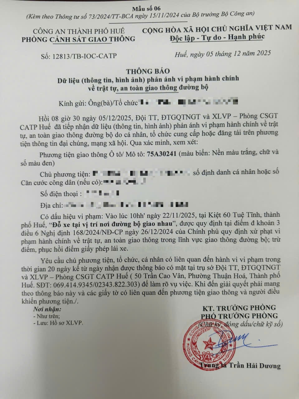 Vấn đề quý Ông/Bà phản ánh, Phòng Cảnh sát giao thông – Công an thành phố Huế đã kiểm tra và xin thông báo kết quả như sau: