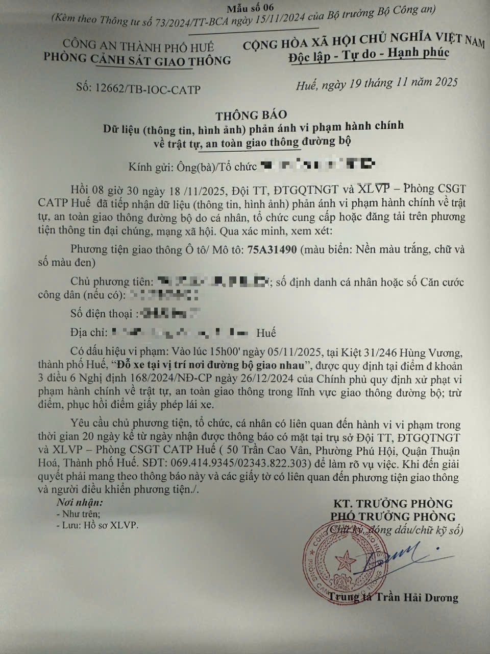 Vấn đề quý Ông/Bà phản ánh, Phòng Cảnh sát giao thông – Công an thành phố Huế đã kiểm tra và xin thông báo kết quả như sau: