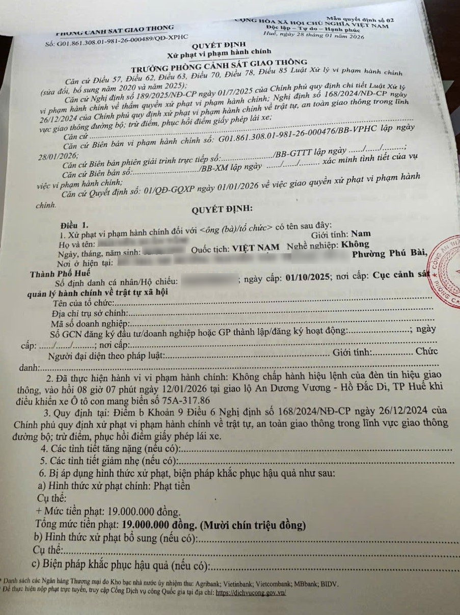 Phòng Cảnh sát giao thông cập nhật Quyết định xử phạt (Đính kèm QĐ).