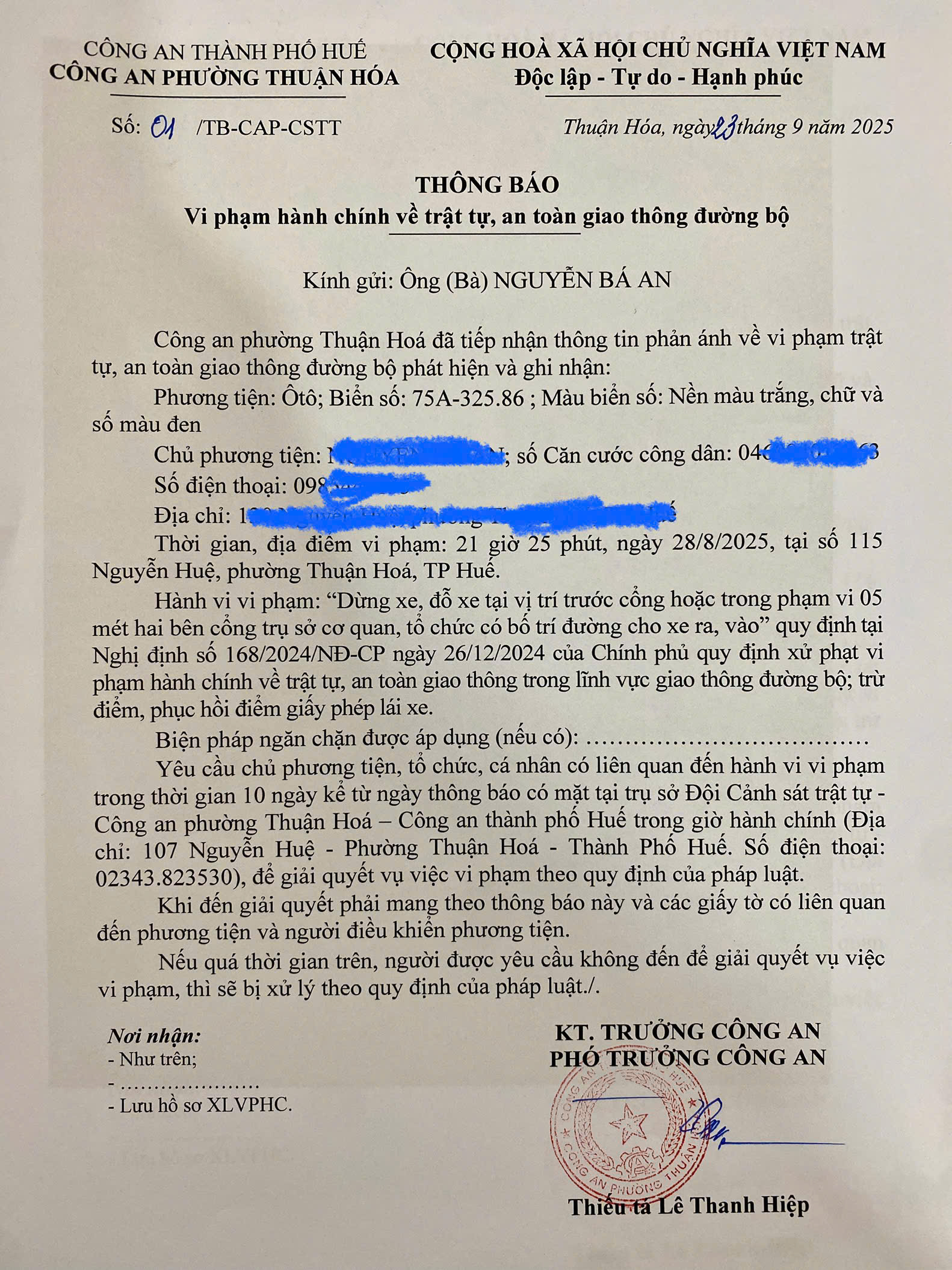 Vấn đề quý Ông/Bà phản ánh, Công an thành phố Huế đã chỉ đạo Công an phường Thuận Hóa kiểm tra và xin thông báo kết quả như sau: