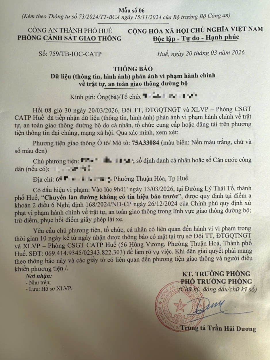 Vấn đề quý Ông/Bà phản ánh, Công an thành phố Huế đã chỉ đạo Phòng Cảnh sát giao thông kiểm tra và trả lời như sau: