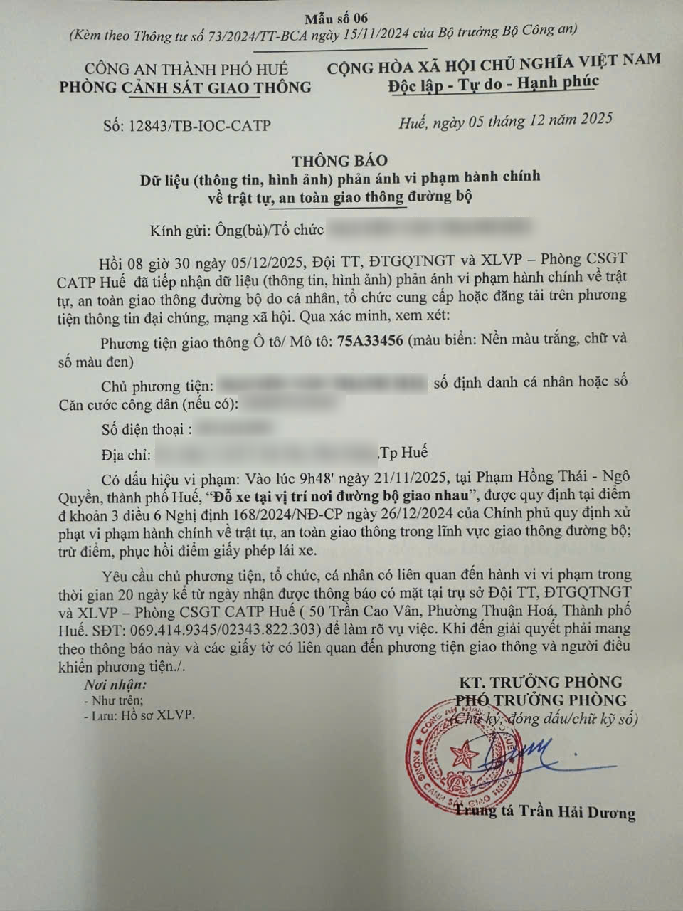 Vấn đề quý Ông/Bà phản ánh, Phòng Cảnh sát giao thông – Công an thành phố Huế đã kiểm tra và xin thông báo kết quả như sau: