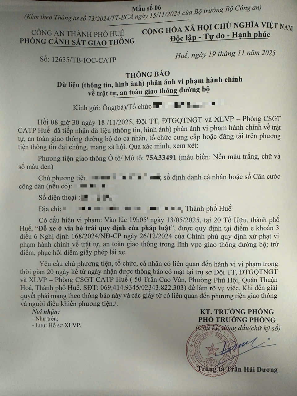 Vấn đề quý Ông/Bà phản ánh, Phòng Cảnh sát giao thông – Công an thành phố Huế đã kiểm tra và xin thông báo kết quả như sau: