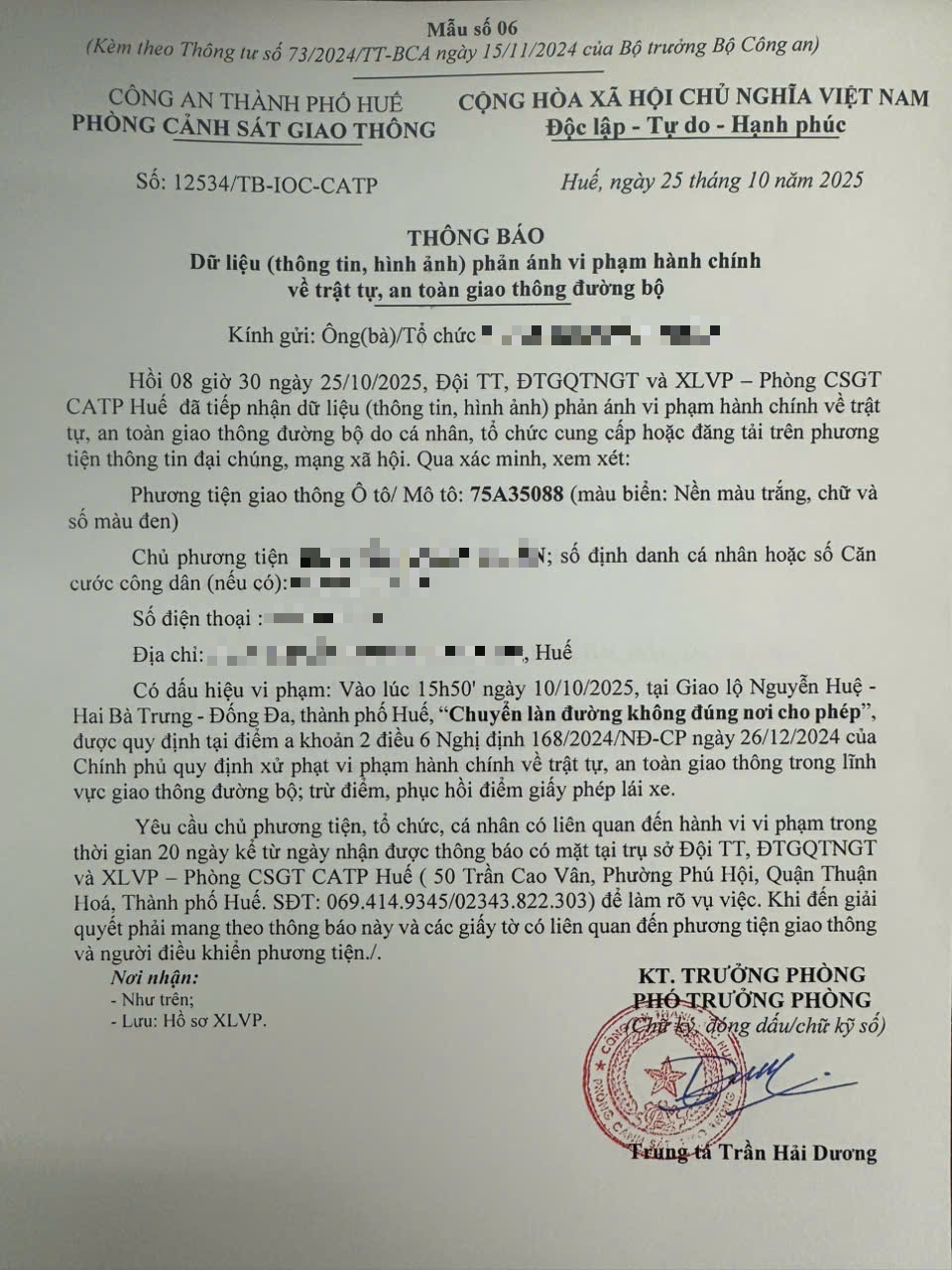 Vấn đề quý Ông/Bà phản ánh, Phòng Cảnh sát giao thông – Công an thành phố Huế đã kiểm tra và xin thông báo kết quả như sau: