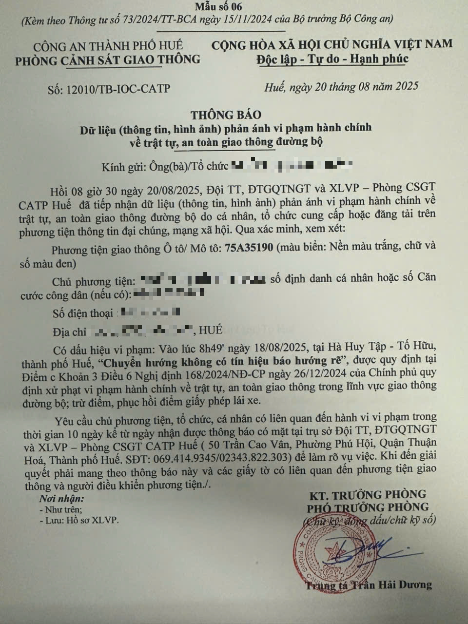Vấn đề quý Ông/Bà phản ánh, Phòng Cảnh sát giao thông – Công an thành phố Huế đã kiểm tra và xin thông báo kết quả như sau: