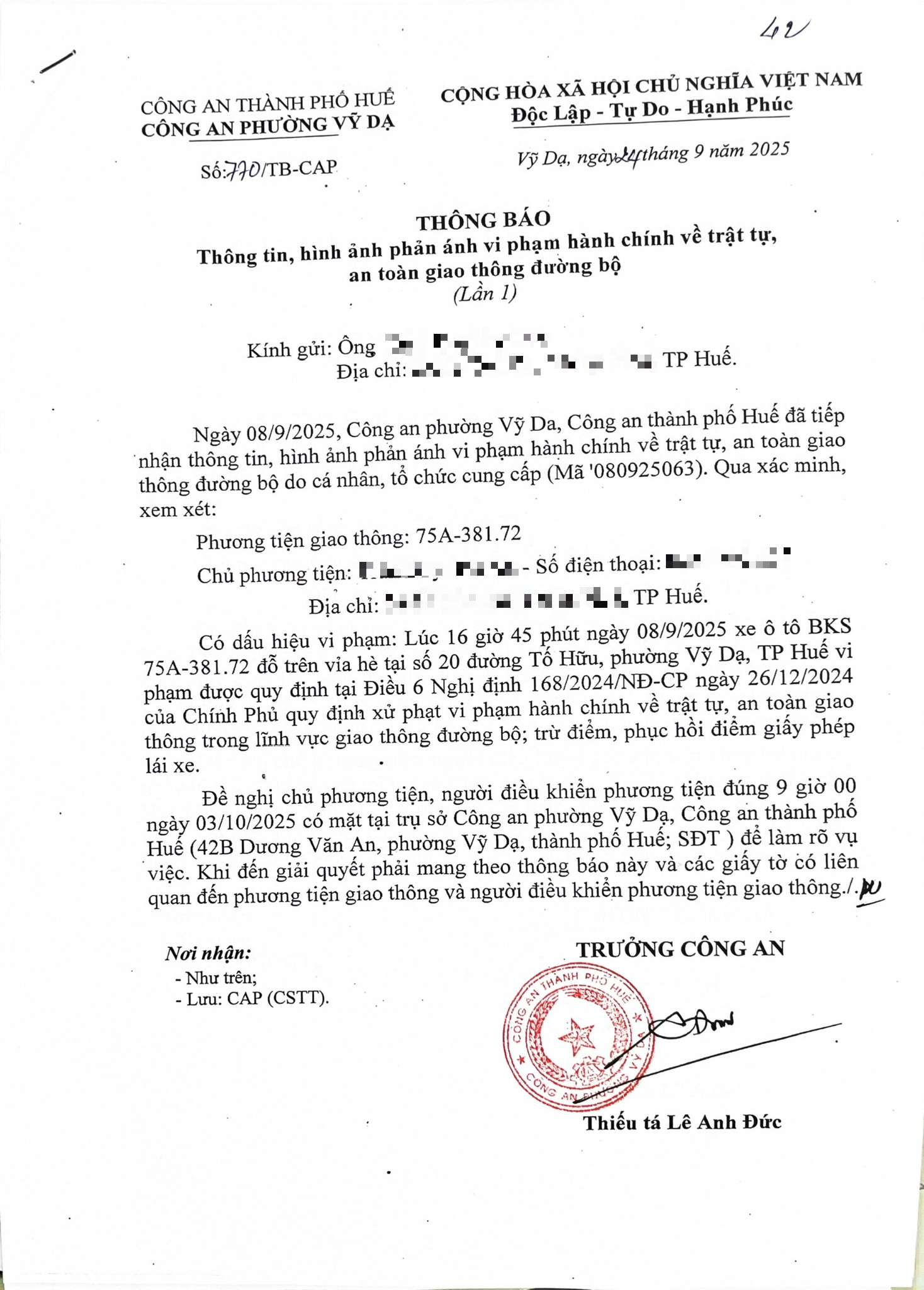 Vấn đề quý Ông/Bà phản ánh, Công an thành phố Huế đã chỉ đạo Công an phường Vỹ Dạ kiểm tra và xin thông báo kết quả như sau: