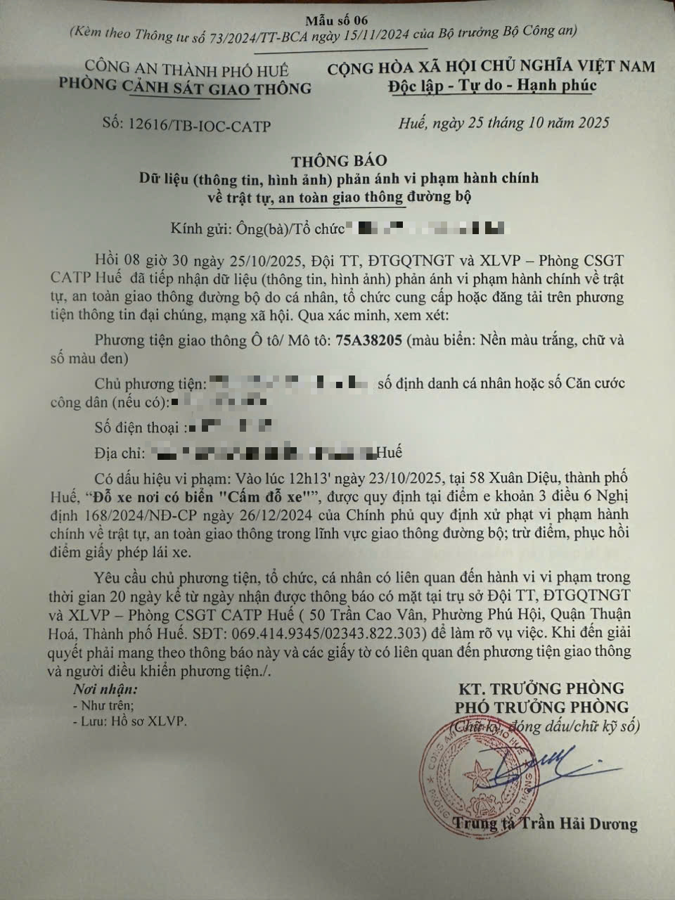Vấn đề quý Ông/Bà phản ánh, Phòng Cảnh sát giao thông – Công an thành phố Huế đã kiểm tra và xin thông báo kết quả như sau: