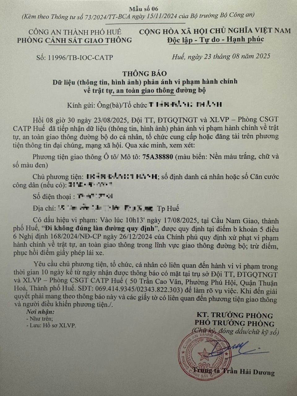Vấn đề quý Ông/Bà phản ánh, Phòng Cảnh sát giao thông – Công an thành phố Huế đã kiểm tra và xin thông báo kết quả như sau: