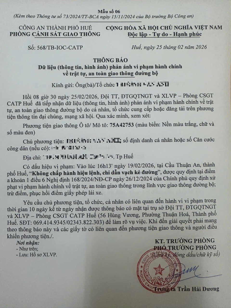 Vấn đề quý Ông/Bà phản ánh, Phòng Cảnh sát giao thông - Công an thành phố Huế đã kiểm tra và xin thông báo kết quả như sau:
