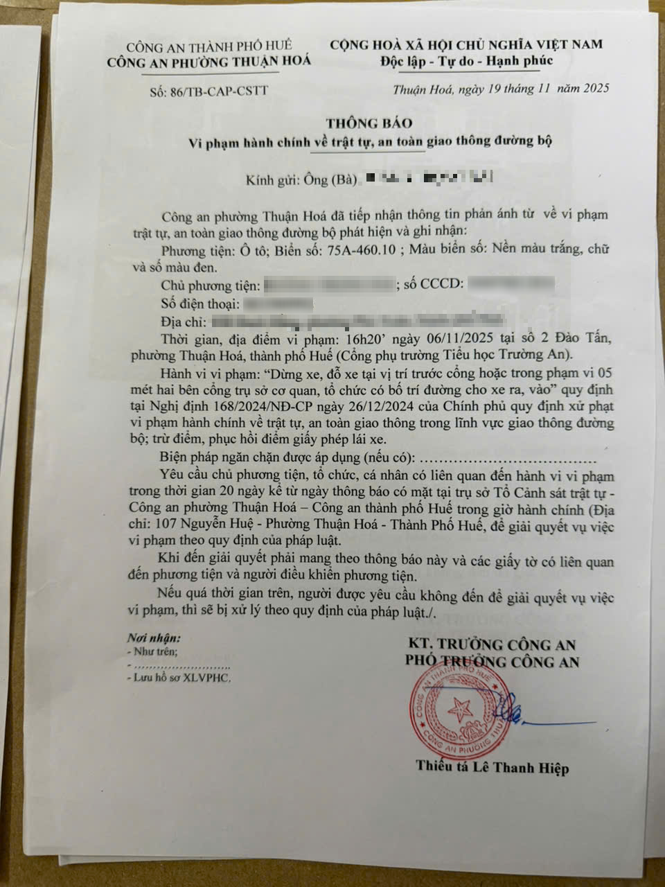 Công an phường Thuận Hóa đã lập hồ sơ, thông báo chủ phương tiện đến làm việc. Tuy nhiên hiện chủ phương tiện vẫn chưa trình diện tại cơ quan. Công an phường sẽ gửi thông báo cho cơ quan đăng kiểm để đưa phương tiện vào cảnh báo trên Chương trình Quản lý kiểm định.