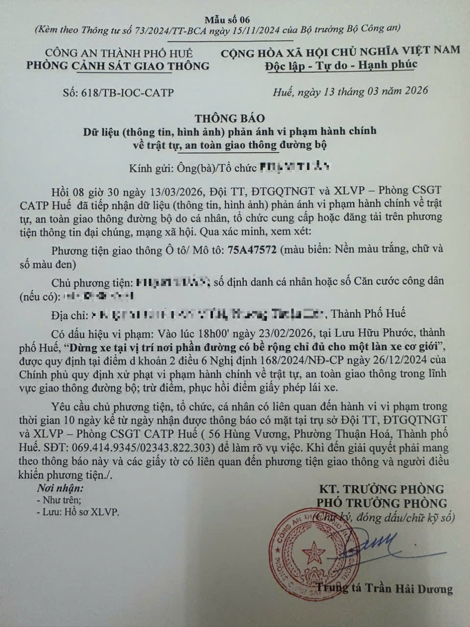 Vấn đề quý Ông/Bà phản ánh, Phòng Cảnh sát giao thông – Công an thành phố Huế đã kiểm tra và xin thông báo kết quả như sau: