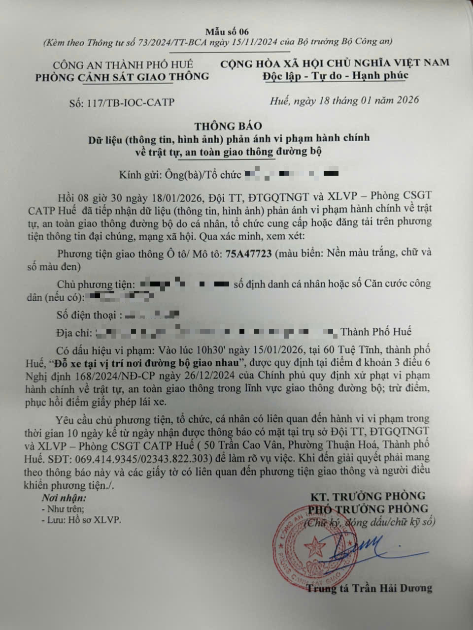 Vấn đề quý Ông/Bà phản ánh, Phòng Cảnh sát giao thông – Công an thành phố Huế đã kiểm tra và xin thông báo kết quả như sau: