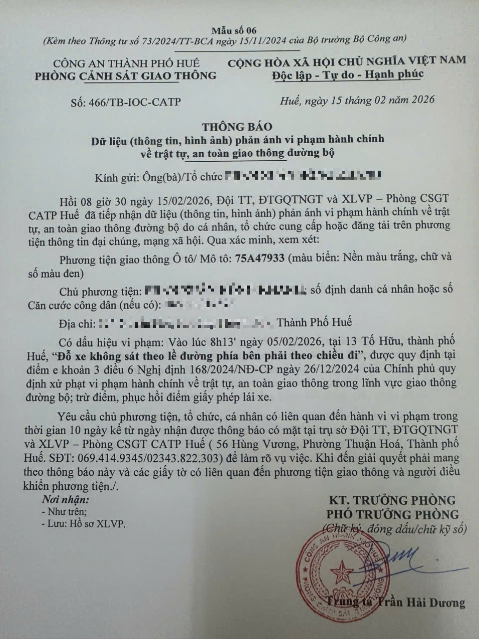 Vấn đề quý Ông/Bà phản ánh, Phòng Cảnh sát giao thông – Công an thành phố Huế đã kiểm tra và xin thông báo kết quả như sau: