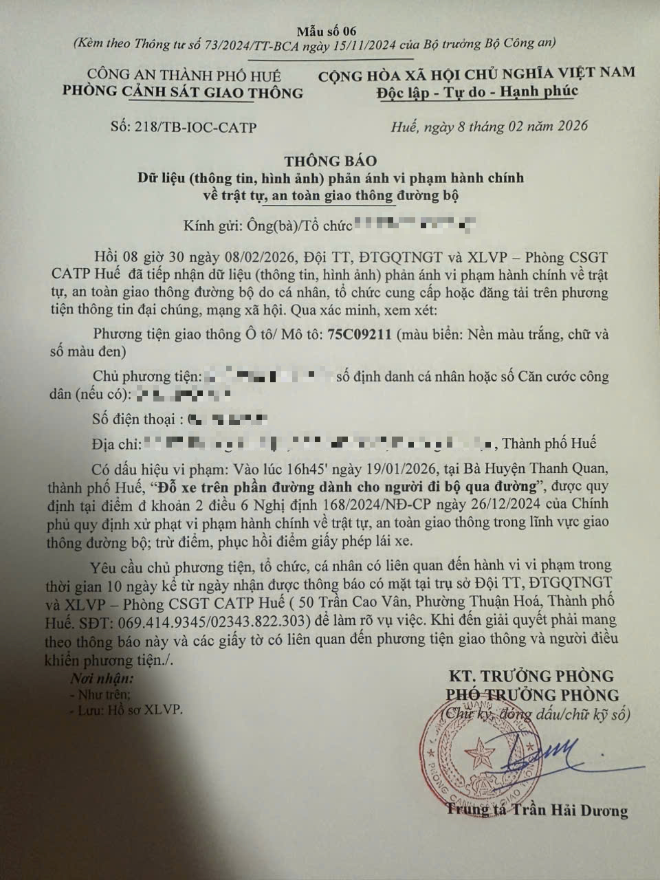 Vấn đề quý Ông/Bà phản ánh, Phòng Cảnh sát giao thông – Công an thành phố Huế đã kiểm tra và xin thông báo kết quả như sau: