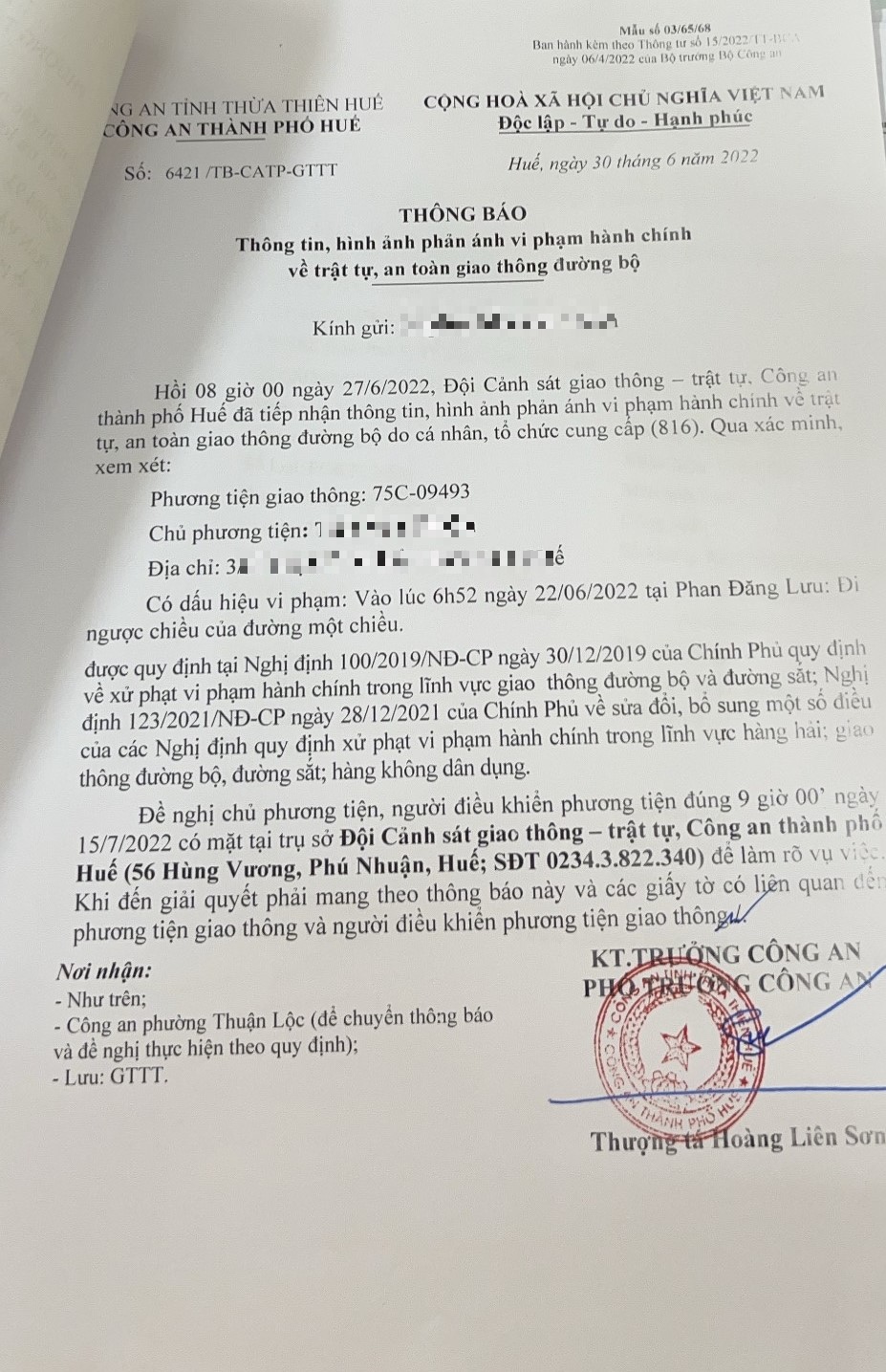 Vấn đề Ông/Bà phản ánh, Công an tỉnh đã chỉ đạo Công an thành phố Huế xin thông báo kết quả xử lý như sau:
