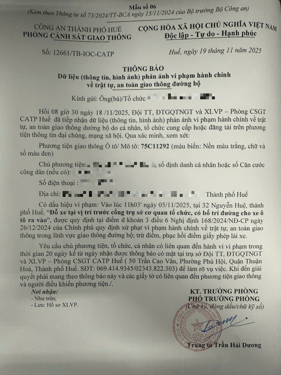 Vấn đề quý Ông/Bà phản ánh, Phòng Cảnh sát giao thông – Công an thành phố Huế đã kiểm tra và xin thông báo kết quả như sau:
