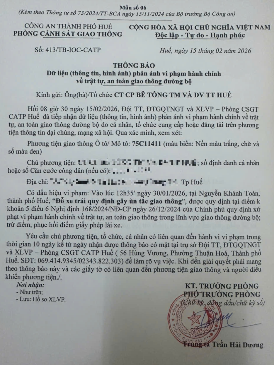 Vấn đề quý Ông/Bà phản ánh, Phòng Cảnh sát giao thông – Công an thành phố Huế đã kiểm tra và xin thông báo kết quả như sau: