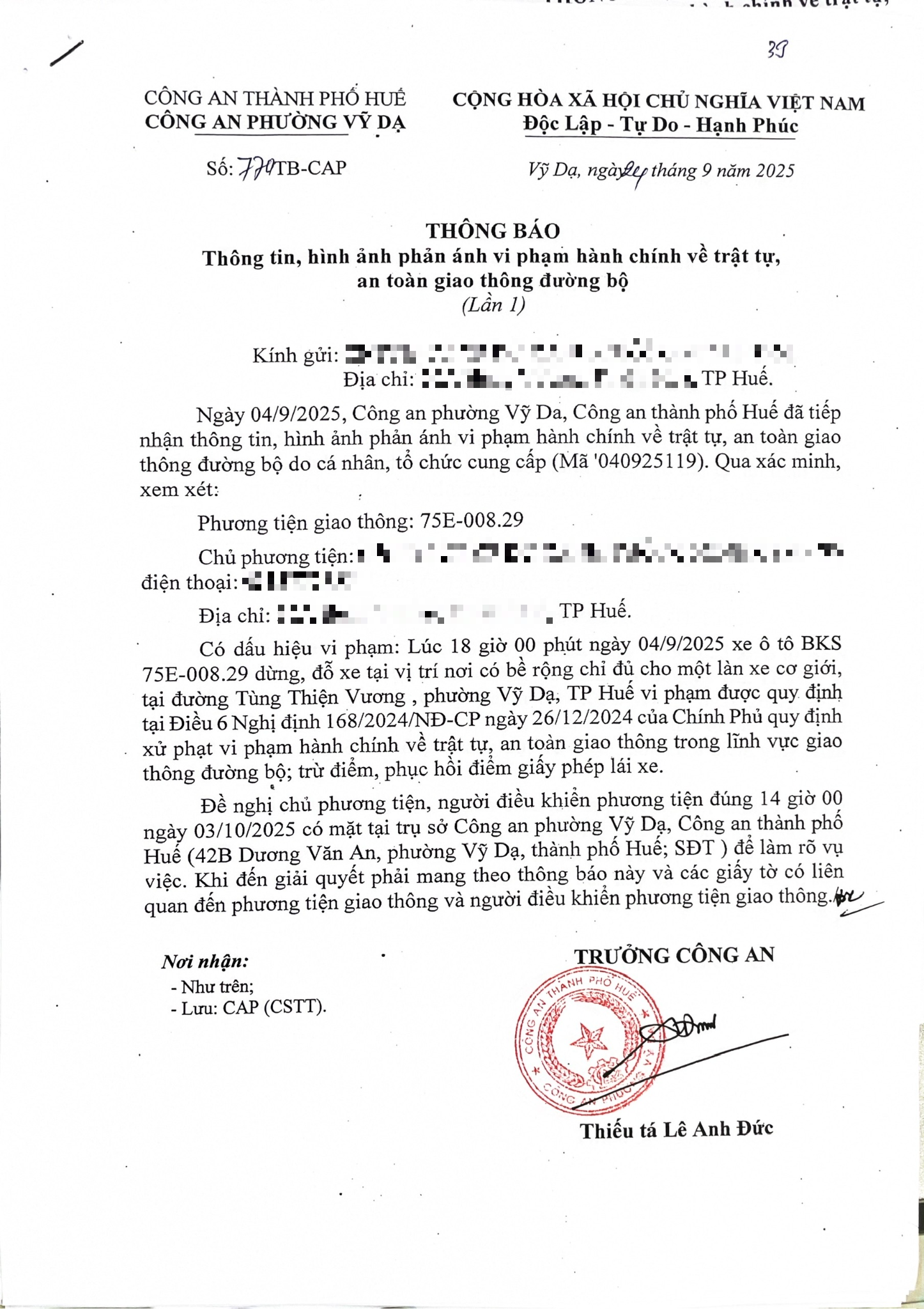 Vấn đề quý Ông/Bà phản ánh, Công an thành phố Huế đã chỉ đạo Công an phường Vỹ Dạ kiểm tra và xin thông báo kết quả như sau: