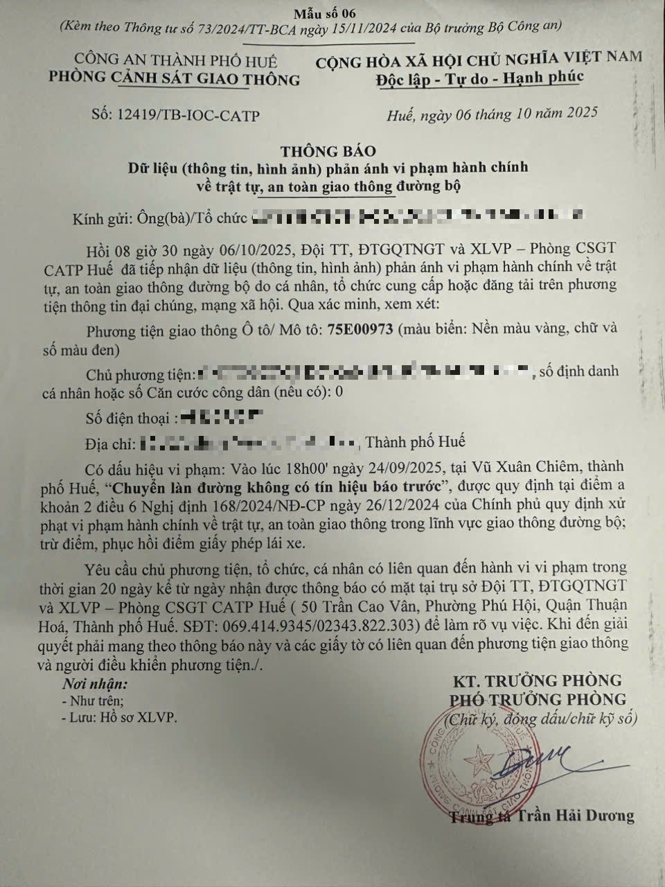 Vấn đề Ông/Bà phản ánh, Công an thành phố Huế đã chỉ đạo Phòng Cảnh sát giao thông kiểm tra và xin thông báo kết quả như sau:
