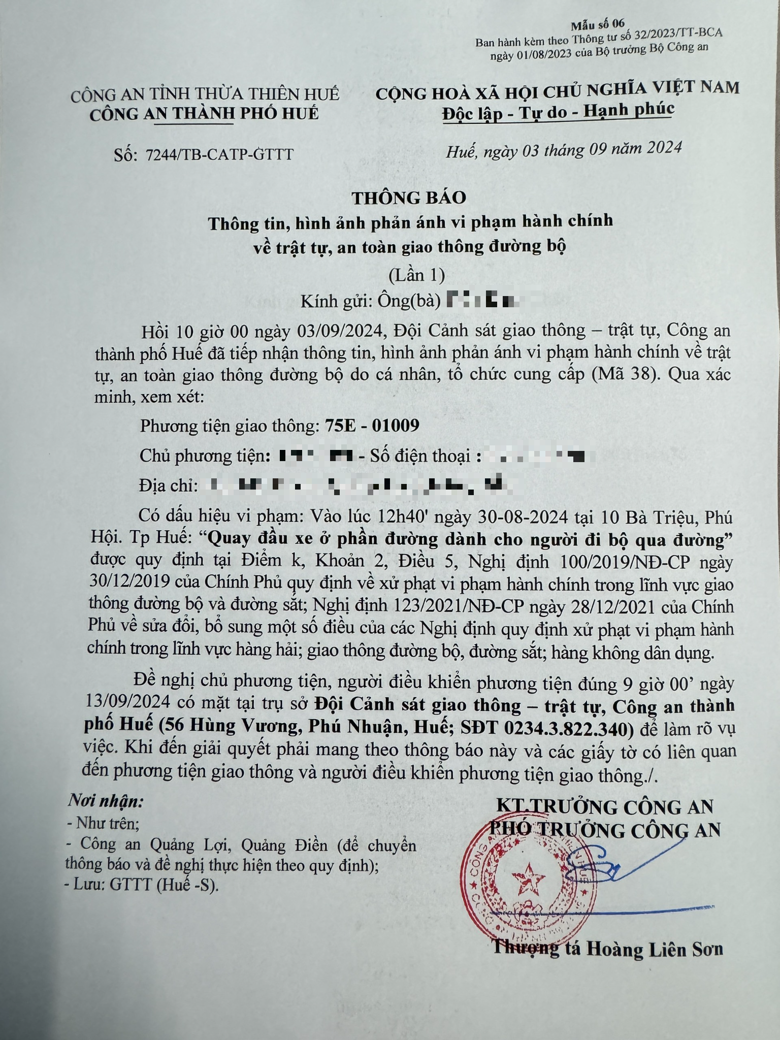 Vấn đề quý Ông/Bà phản ánh, Công an tỉnh đã chỉ đạo Công an thành phố Huế kiểm tra và xin thông báo kết quả như sau: