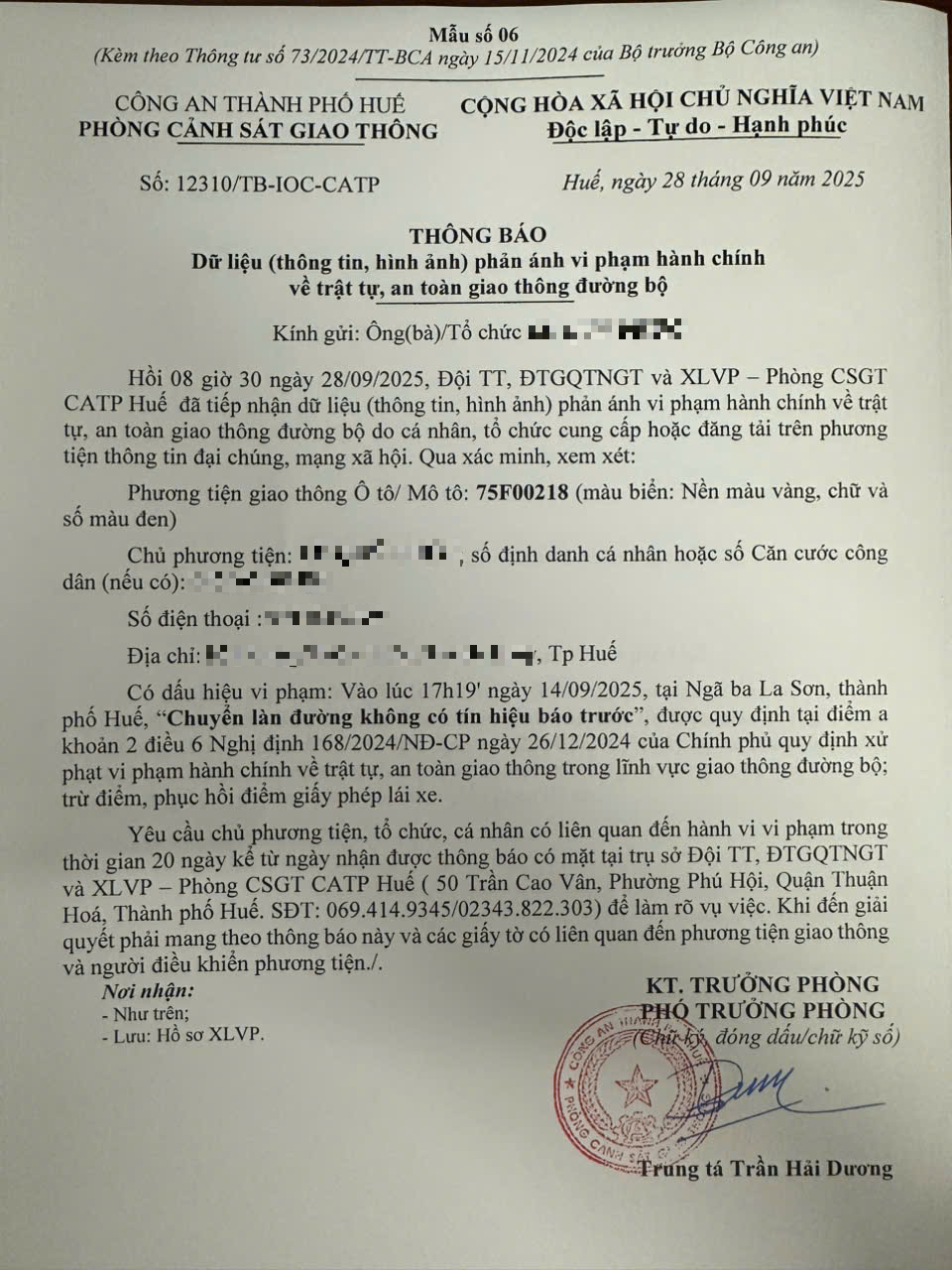 Vấn đề quý Ông/Bà phản ánh, Công an thành phố Huế đã chỉ đạo Phòng Cảnh sát giao thông kiểm tra và xin thông báo kết quả như sau: