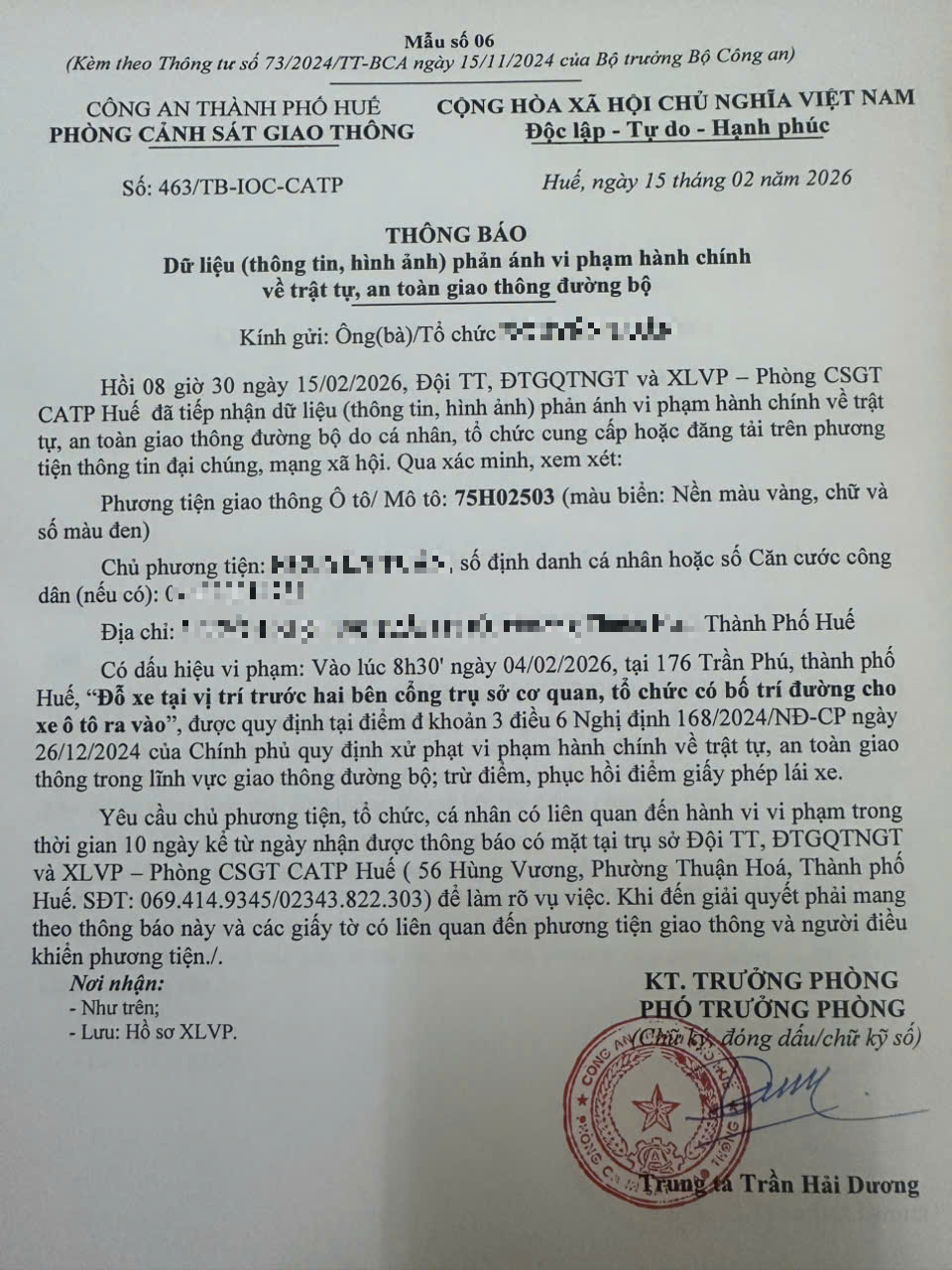 Vấn đề quý Ông/Bà phản ánh, Phòng Cảnh sát giao thông – Công an thành phố Huế đã kiểm tra và xin thông báo kết quả như sau: