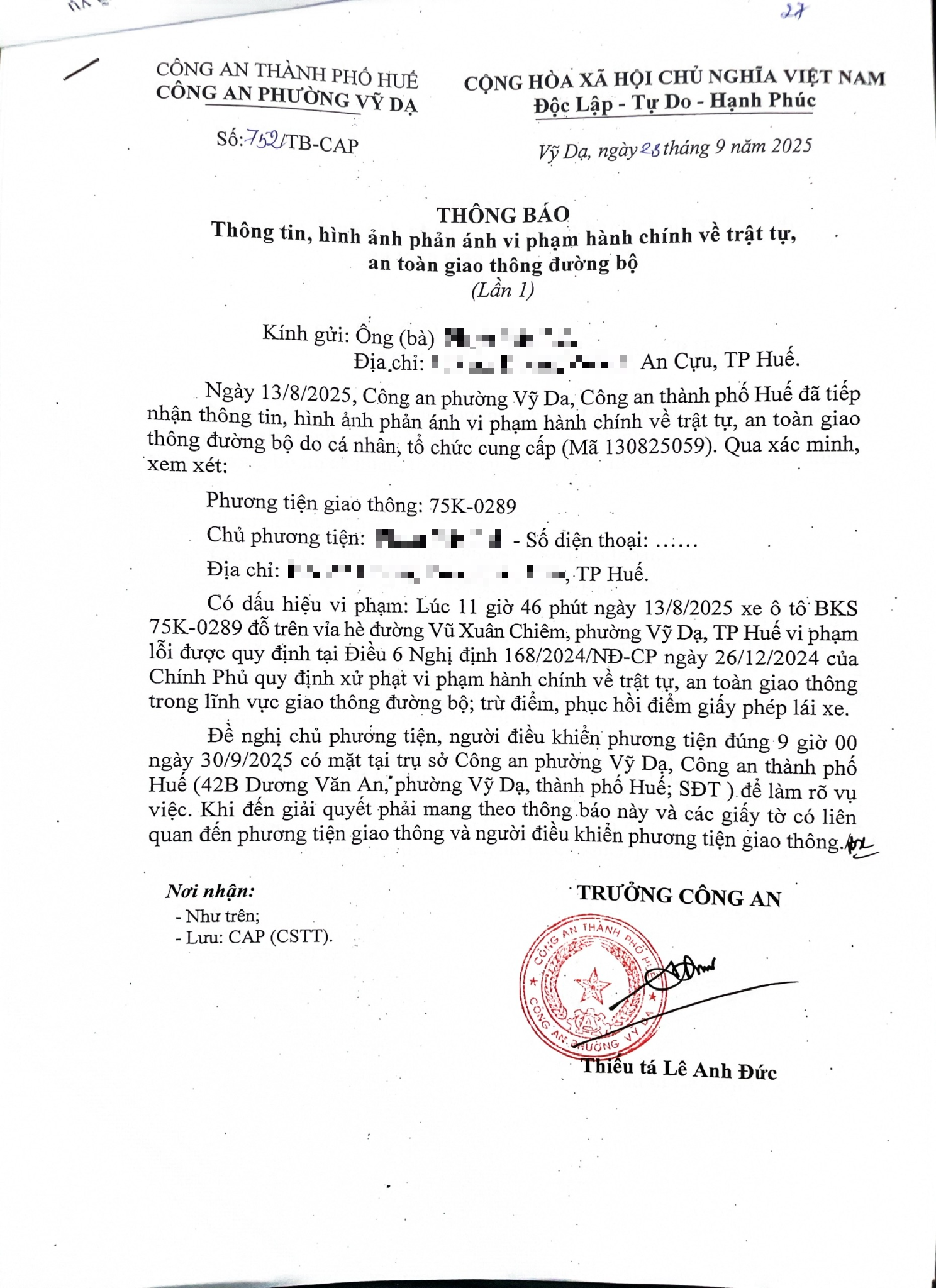 Vấn đề quý Ông/Bà phản ánh, Công an thành phố Huế đã chỉ đạo Công an phường Vỹ Dạ kiểm tra và xin thông báo kết quả như sau: