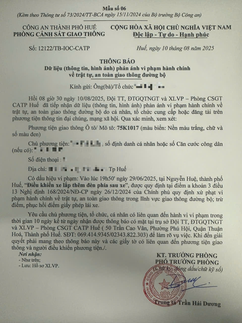 Vấn đề quý Ông/Bà phản ánh, Phòng Cảnh sát giao thông – Công an thành phố Huế đã kiểm tra và xin thông báo kết quả như sau:
