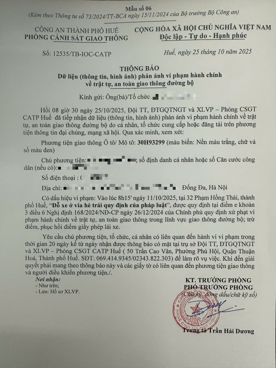 Vấn đề quý Ông/Bà phản ánh, Phòng Cảnh sát giao thông – Công an thành phố Huế đã kiểm tra và xin thông báo kết quả như sau: