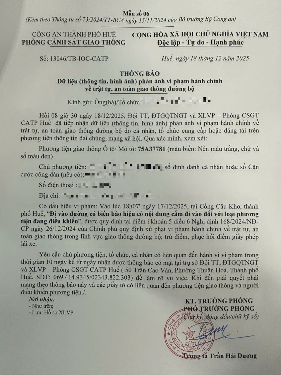 Vấn đề quý Ông/Bà phản ánh, Phòng Cảnh sát giao thông – Công an thành phố Huế đã kiểm tra và xin thông báo kết quả như sau: