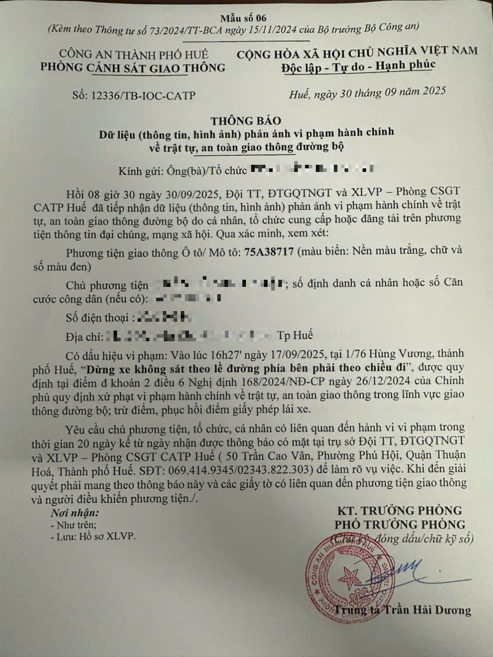 Vấn đề quý Ông/Bà phản ánh, Công an thành phố Huế đã chỉ đạo Phòng Cảnh sát giao thông kiểm tra và xin thông báo kết quả như sau: