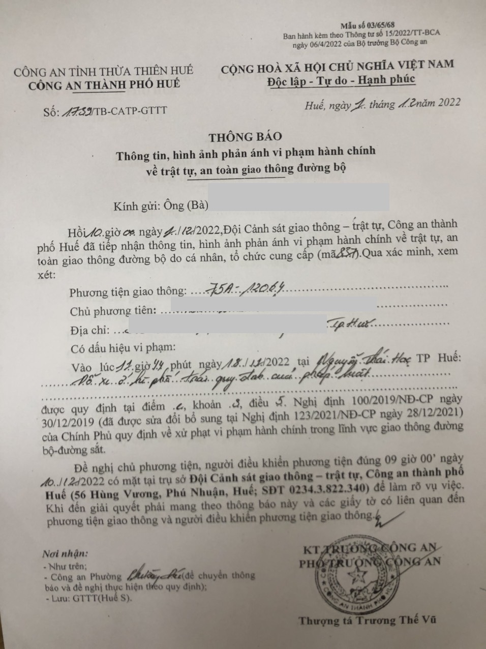 Vấn đề Ông/Bà phản ánh, Công an tỉnh đã chỉ đạo Công an thành phố Huế kiểm tra và trả lời như sau: