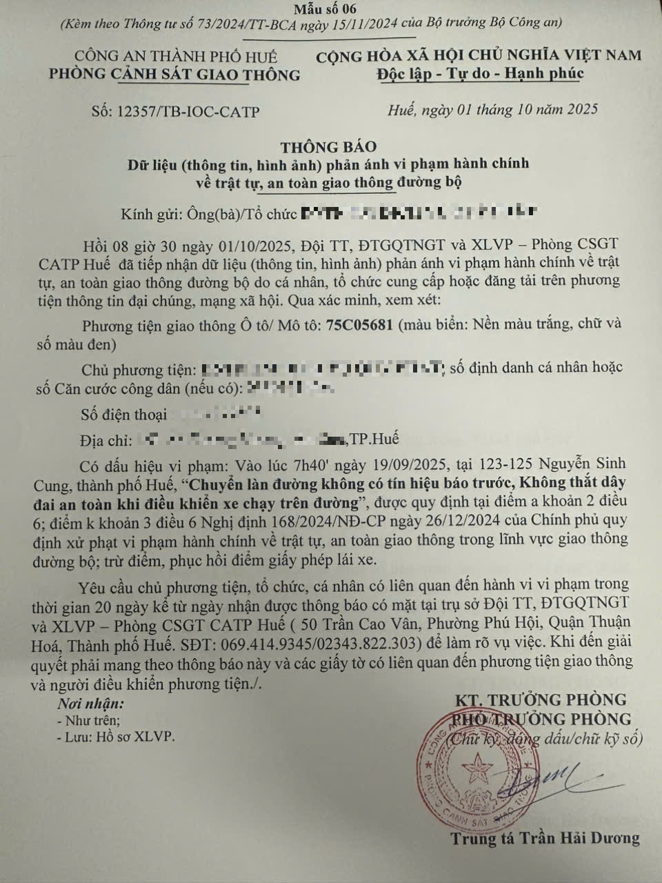 Vấn đề quý Ông/Bà phản ánh, Phòng Cảnh sát giao thông – Công an thành phố Huế đã kiểm tra và xin thông báo kết quả như sau: