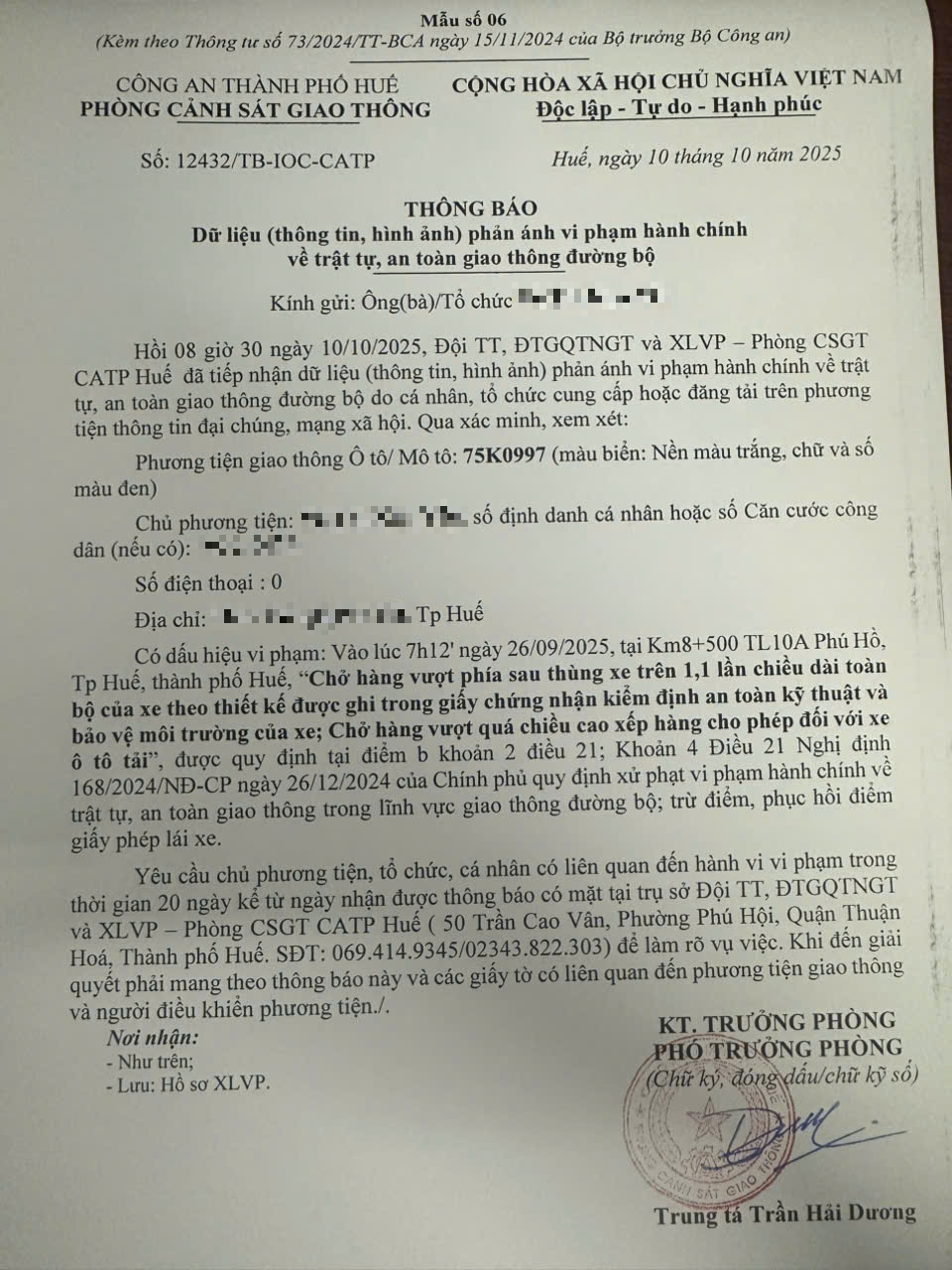 Vấn đề Ông/Bà phản ánh, Công an thành phố Huế đã chỉ đạo Phòng Cảnh sát giao thông kiểm tra và xin thông báo kết quả như sau: