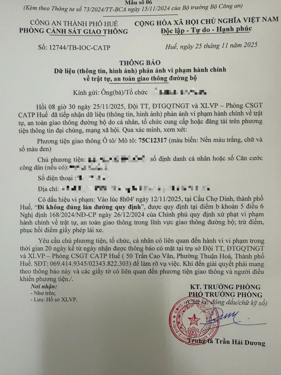 Vấn đề quý Ông/Bà phản ánh, Phòng Cảnh sát giao thông – Công an thành phố Huế đã kiểm tra và xin thông báo kết quả như sau: