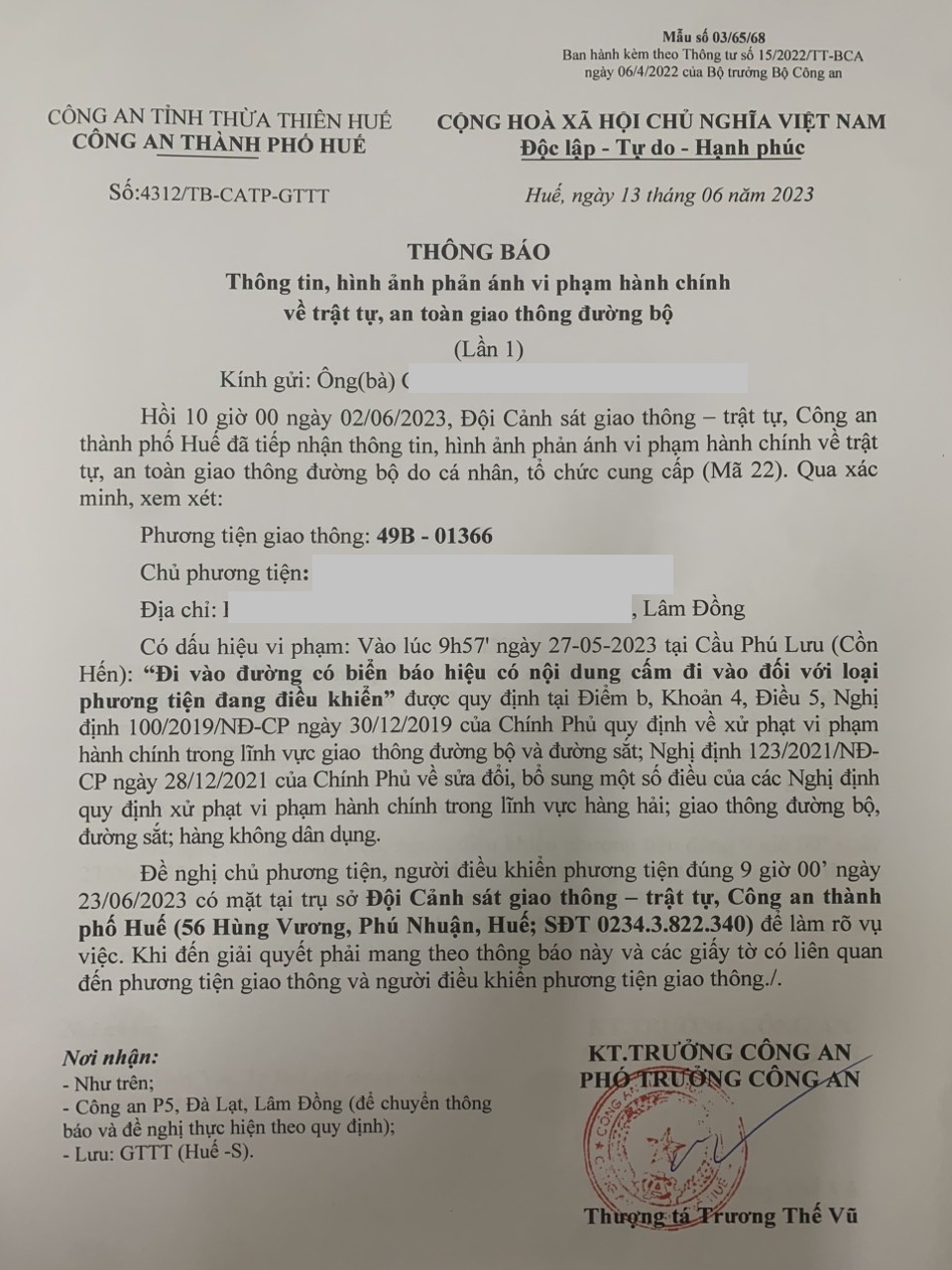 Vấn đề Ông/Bà phản ánh, Công an tỉnh đã chỉ đạo Công an thành phố Huế xin thông báo kết quả xử lý như sau: