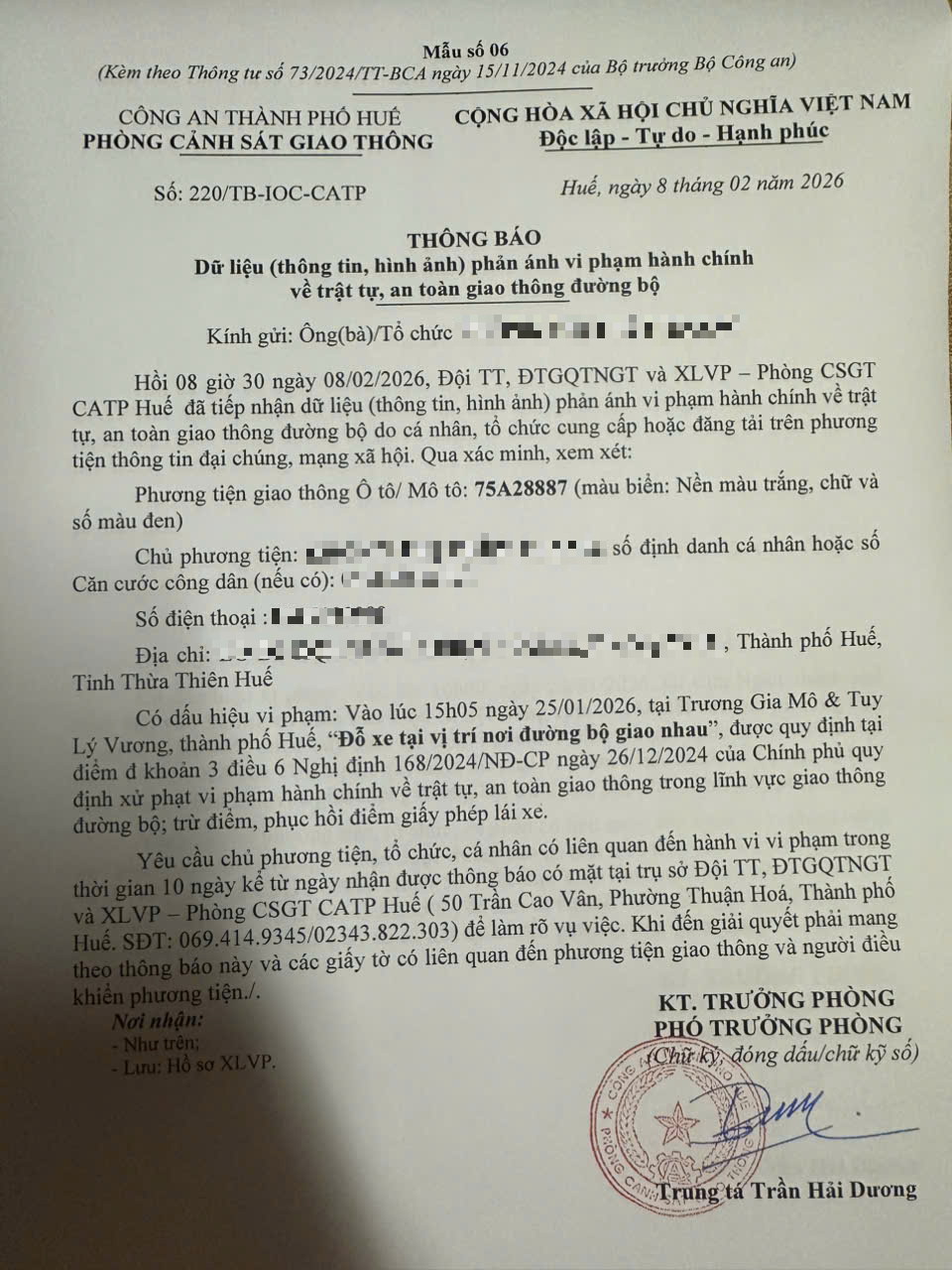 Vấn đề quý Ông/Bà phản ánh, Phòng Cảnh sát giao thông – Công an thành phố Huế đã kiểm tra và xin thông báo kết quả như sau: