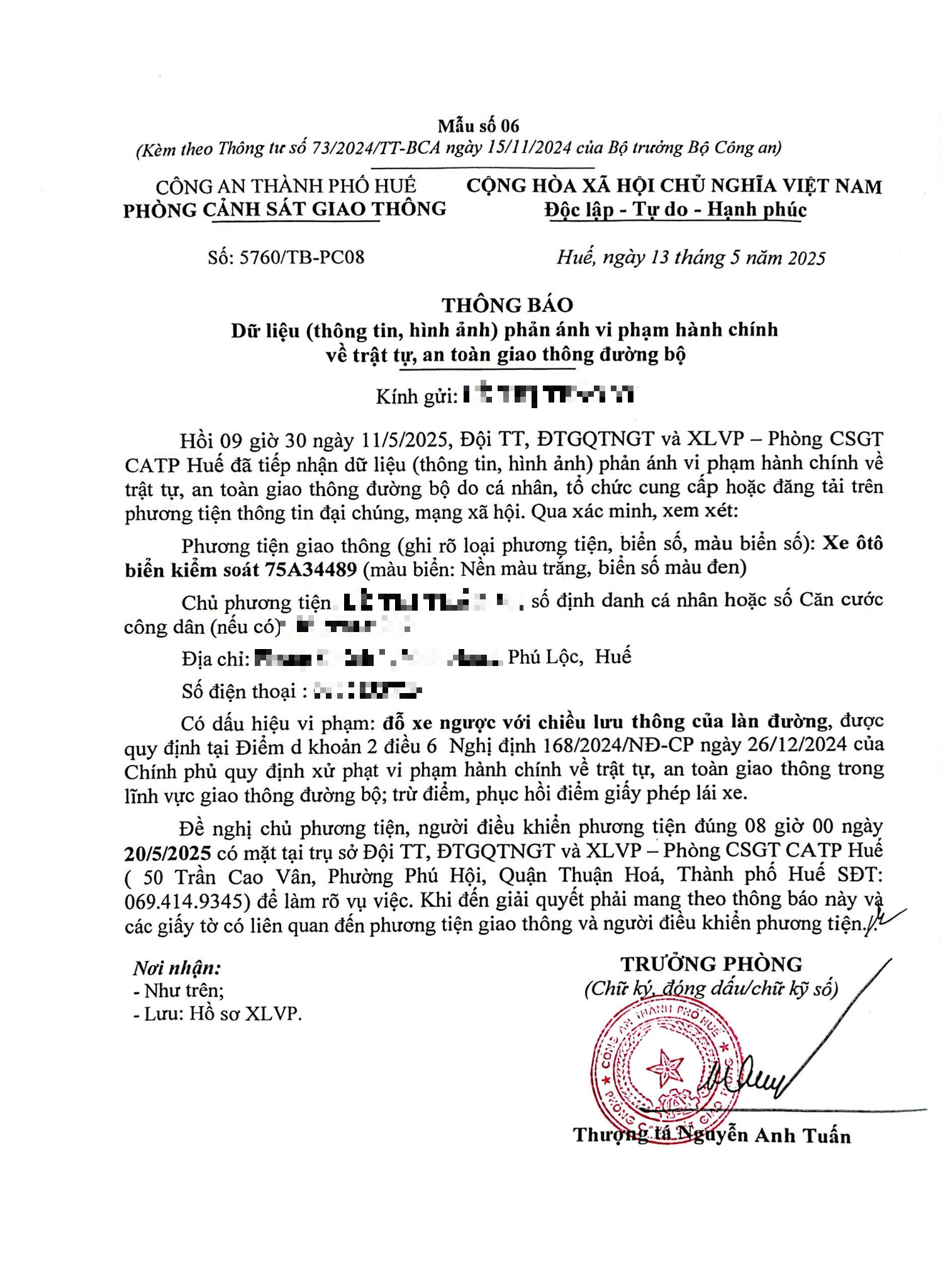 Vấn đề quý Ông/Bà phản ánh, Phòng Cảnh sát giao thông – Công an thành phố Huế đã kiểm tra và xin thông báo kết quả như sau: